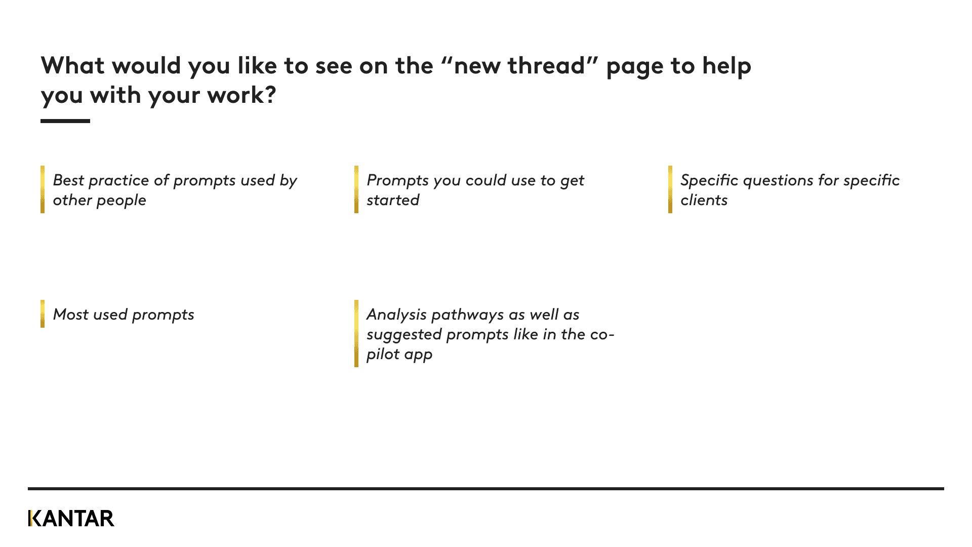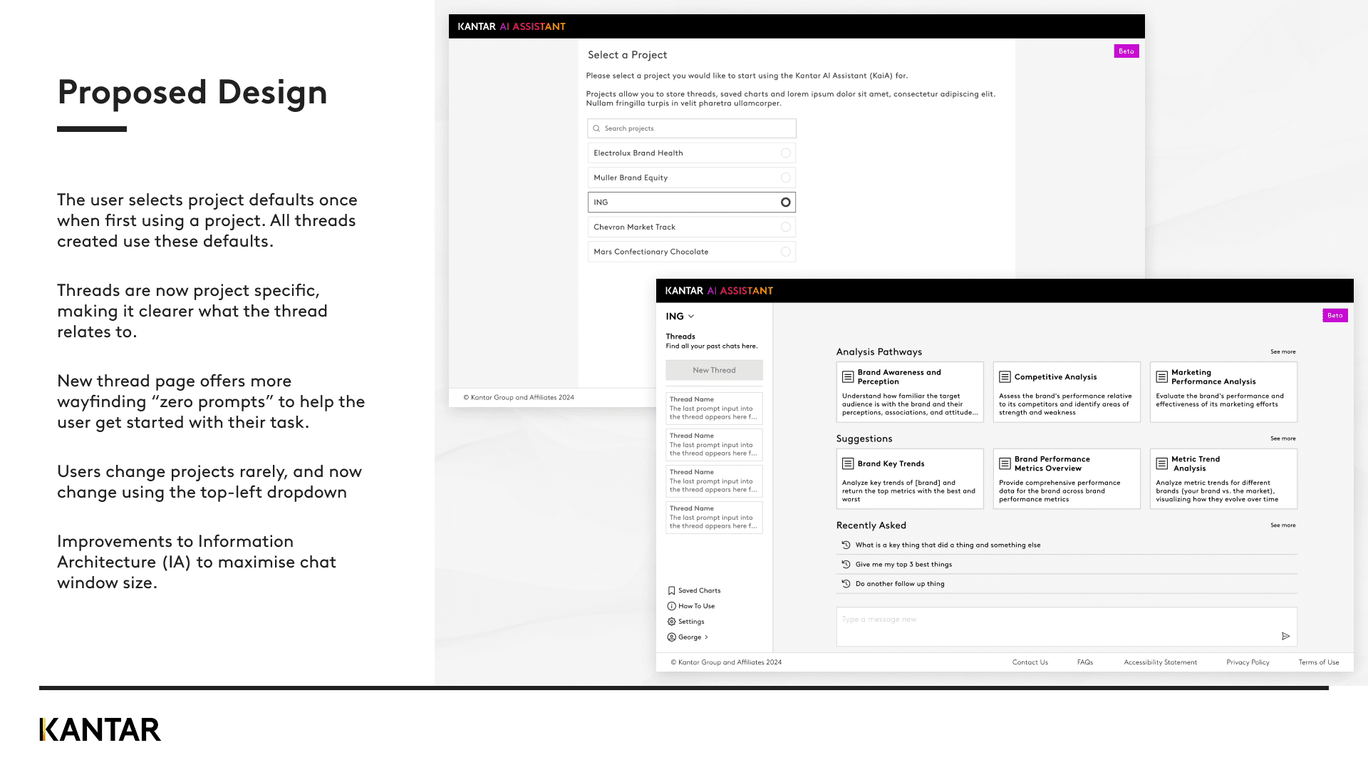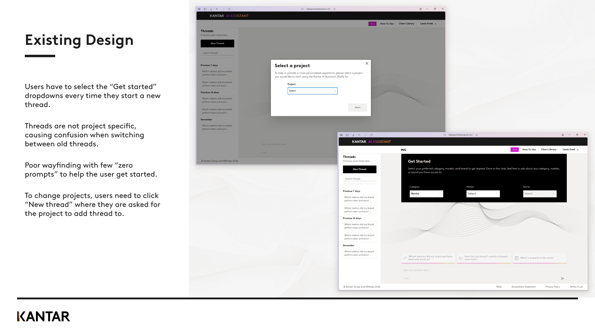 Transforming Kantar AI's thread experience into a seamless interaction that earned 89% satisfaction from users.