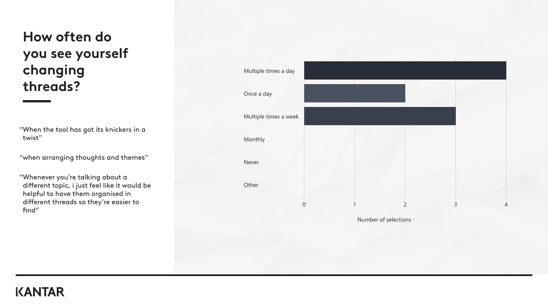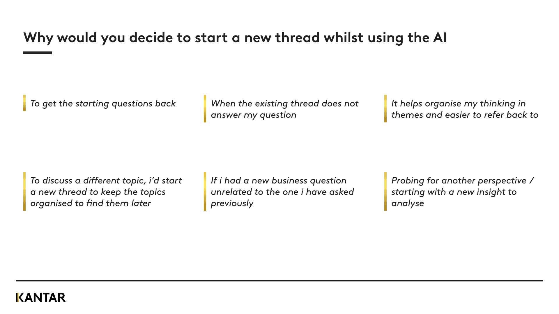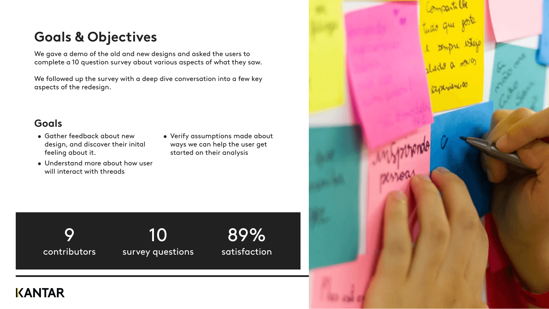 Transforming Kantar AI's thread experience into a seamless interaction that earned 89% satisfaction from users.