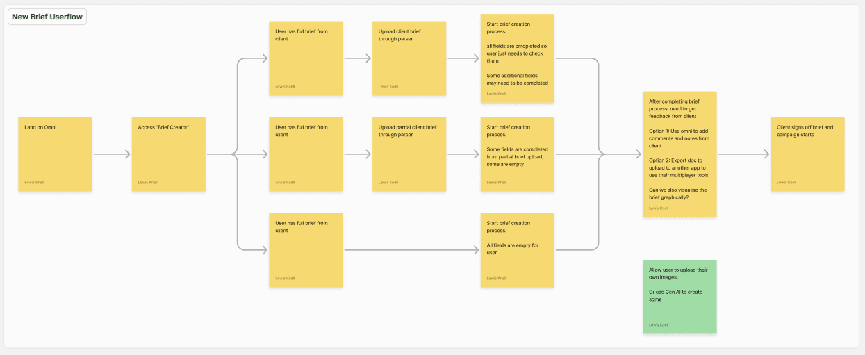Through competitive analysis of media and advertising platforms, we observed a clear industry shift toward AI-driven experiences. Generative AI is increasingly central to campaign creation - streamlining workflows through conversational interfaces and outcome-oriented actions. These patterns reinforced the need for Omni to embed AI not just as a feature, but as a strategic layer that accelerates user goals and simplifies complex tasks.