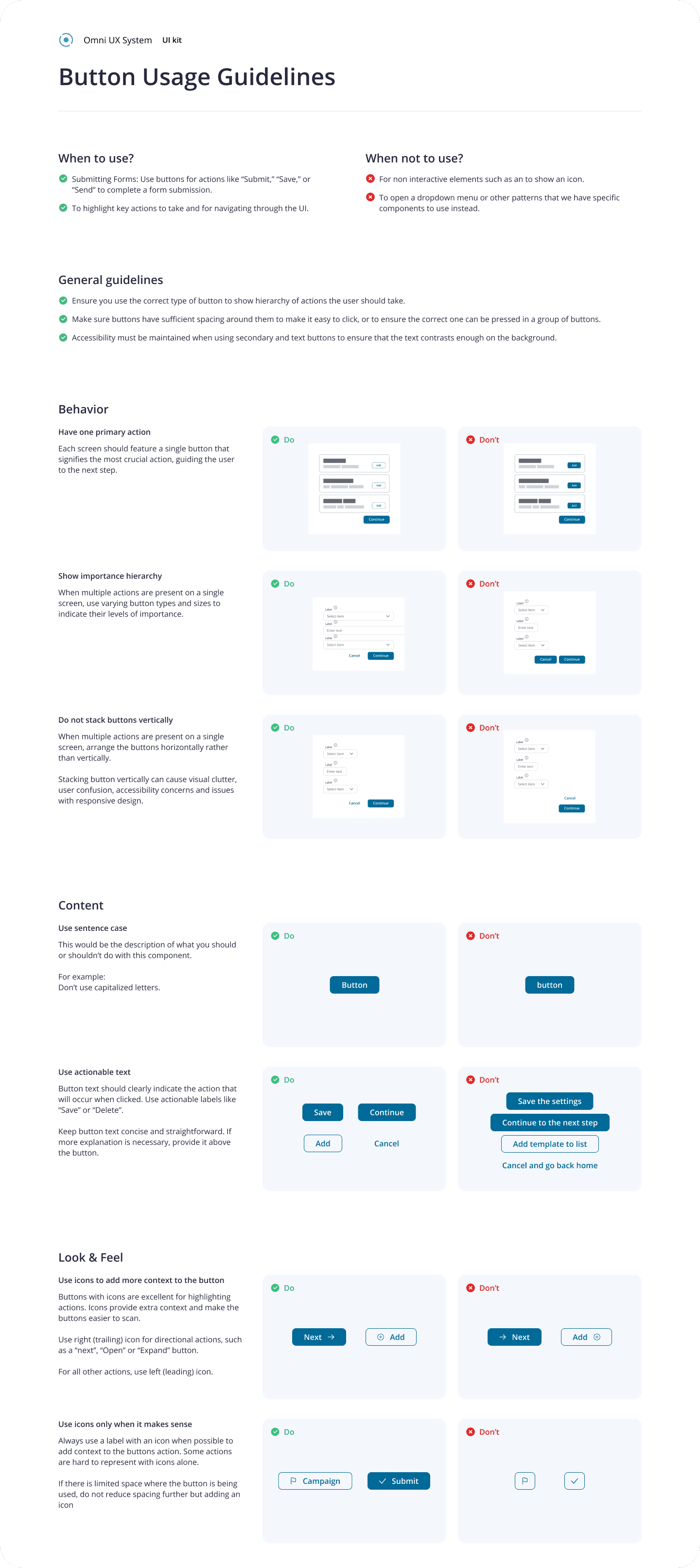 Piloted the redesigned system with a single Omni product team, gathering feedback to address gaps in documentation clarity and component adaptability. These insights informed refinements to ensure smoother adoption across other teams.