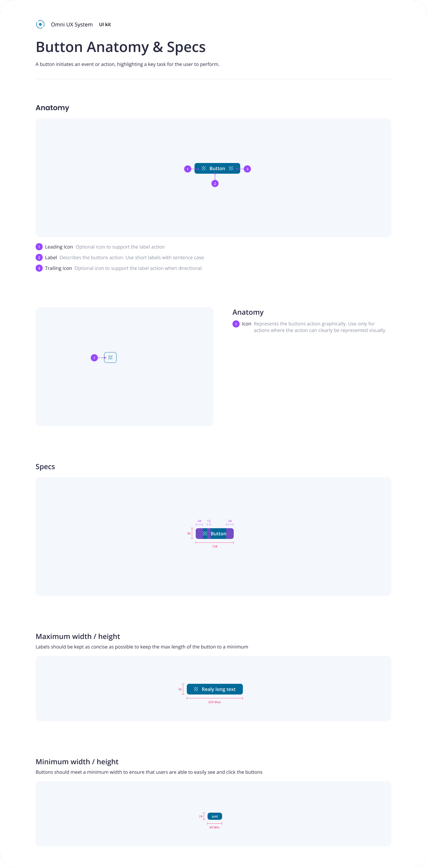 Created documentation for each component including detailed component specs, usage such as “do’s and don'ts”, accessibility guidelines and links to Storybook.